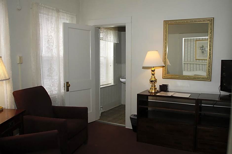 This one-bedroom suite features a spacious living room and a kitchenette. The bedroom offers views of downtown White River Junction.
